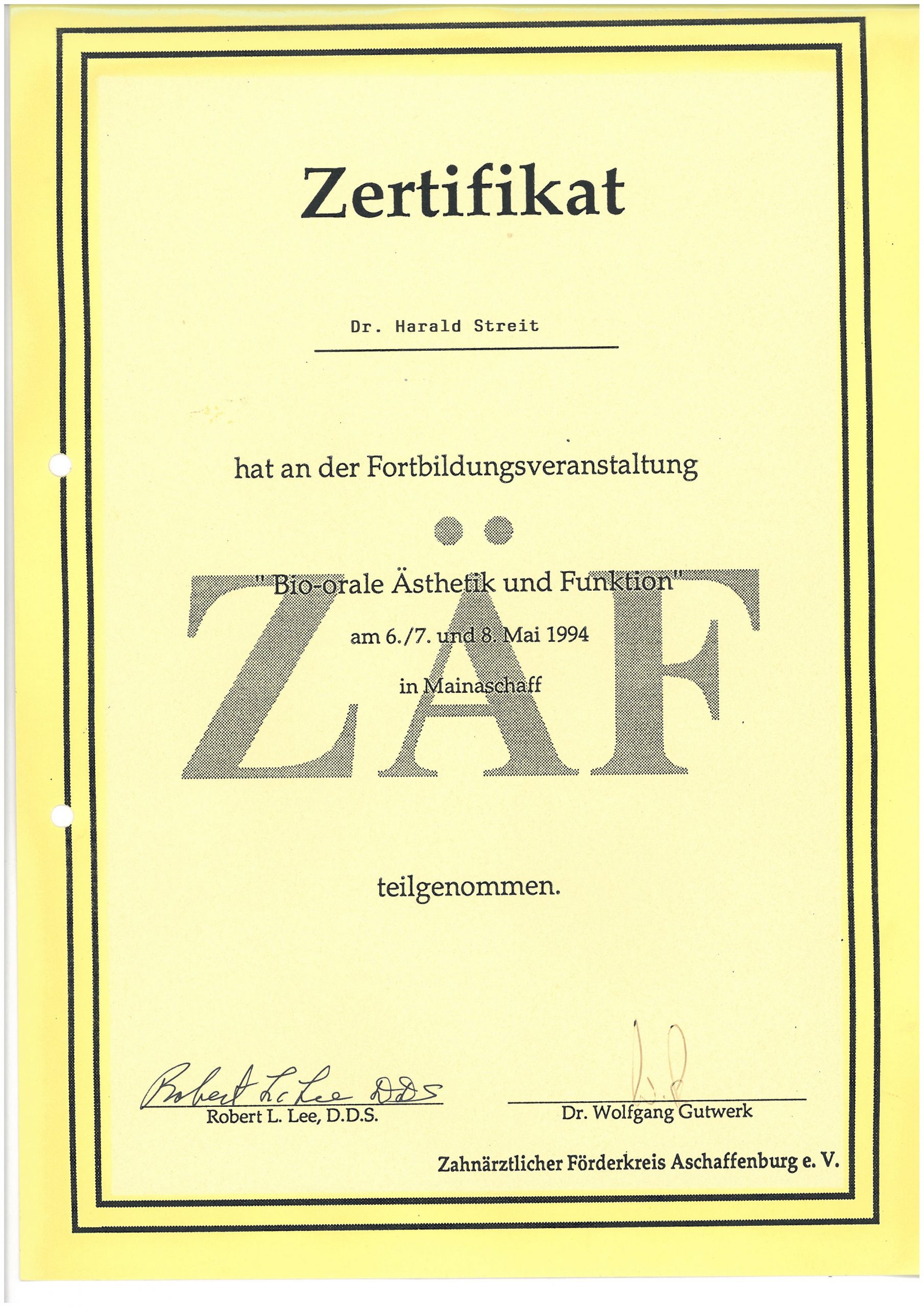 Offiziell anerkannter Tätigkeitsschwerpunkt Ästhetische Zahnmedizin der DGÄZ (Deutsche Gesellschaft für Ästhetische Zahnmedizin)